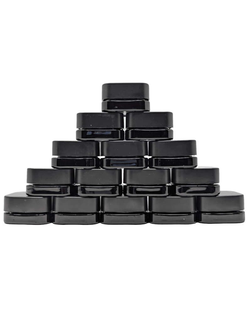 Invest in the safety and elegance of our 9ml black cube glass jars today.