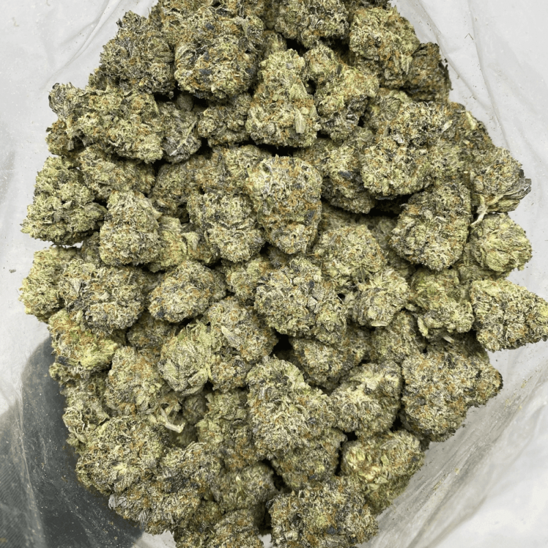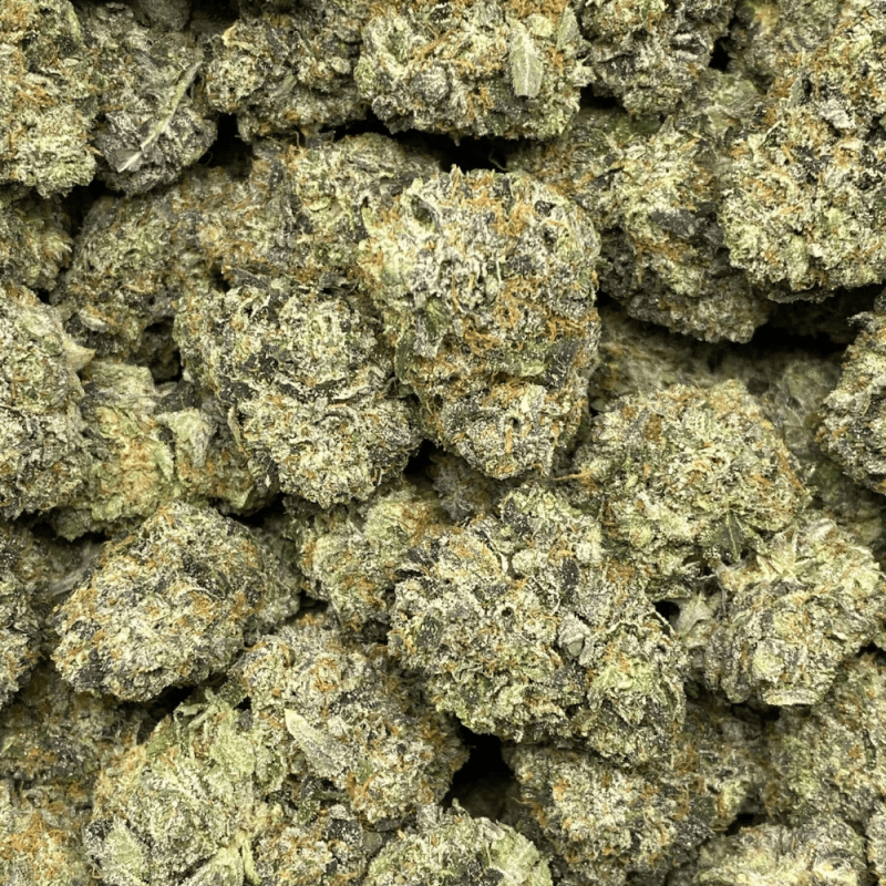 Blackout Bubba is a heavy-hitting Indica-dominant hybrid with roots in the legendary Bubba Kush lineage. When cracked open, users will be met with rich aromas of earthy hash and mocha coffee, layered with hints of spicy chocolate and floral undertones. This batch features oversized, airy, heart-shaped dark olive-green nugs, accented by long, thin orange hairs and coated in a thick layer of sugary white trichomes dripping with sticky resin. The high begins with a euphoric cerebral lift, clearing the mind of negativity before melting into a deeply calming body buzz that leaves users relaxed, pain-free, and slightly sedated. With its potent effects, Blackout Bubba is ideal for evening use and is commonly chosen to help with mood swings, chronic pain, stress, and muscle tension.