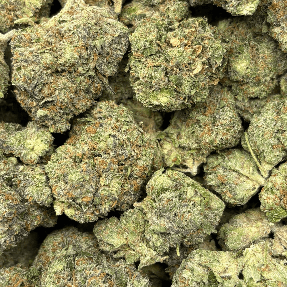 DEATH GAS (BIGS) – QUAD GAS is a heavy-hitting Indica-dominant strain born from crossing Death Bubba with classic Pink genetics, delivering a rich, gassy profile and knockout potency. When cracked open, it unleashes a wave of sharp fuel, earthy musk, and a lingering sweetness that hits the nose with pure intensity. The buds are medium–large in size, dense and sticky, with deep forest greens, subtle purples, and thick orange pistils blanketed in a heavy layer of frosty trichomes. Death Gas delivers a true couch-lock effect—numbing the body, slowing the mind, and easing you into a deep, stoned calm that’s perfect for pain relief, sleep, or serious unwinding.