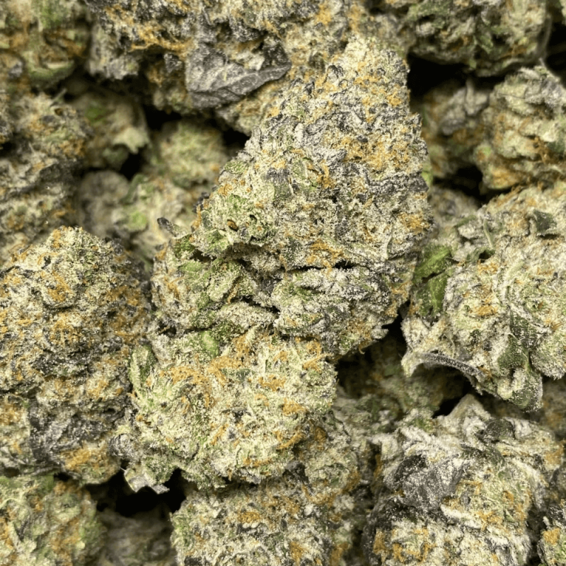 Dino Ice Cream is a premium indica-dominant hybrid (65% indica/35% sativa) created by crossing the decadent Ice Cream Cake and the rare Dino Meat strains. When cracked open, users will experience a blend of sweet creamy nuttiness from Ice Cream Cake complemented by vibrant citrusy orange notes and a hint of pungent spices from Dino Meat. The buds are dense and grape-shaped, showcasing minty and forest green hues with thick orange hairs and a heavy coating of frosty white crystal trichomes. Dino Ice Cream delivers a balanced high, starting with an uplifting cerebral buzz that sparks creativity and happiness before melting into a deeply relaxing body effect, perfect for unwinding after a long day. Its effects make it an excellent choice for those seeking relief from chronic pain, stress, insomnia, or mood swings.