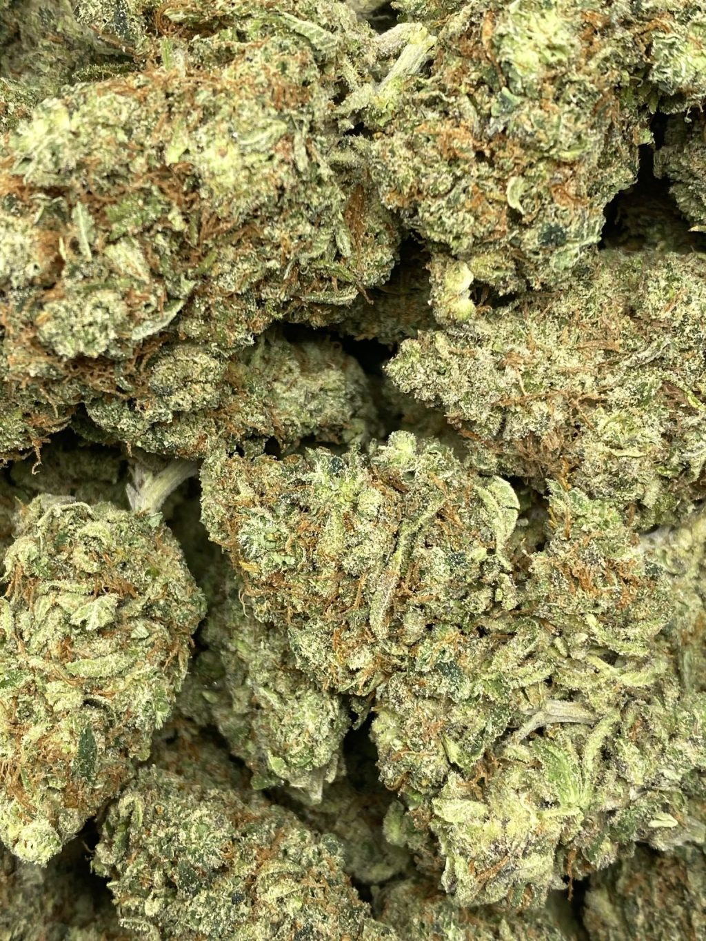Ghost Train Haze is a potent sativa-dominant strain that delivers a sharp, energetic high perfect for daytime use. When cracked open, users will experience a powerful mix of sweet and sour citrus layered with fresh pine and earthy undertones. This batch features mostly small buds with a few medium ones scattered in, all showcasing vibrant green hues, fiery orange hairs, and a shimmering coat of trichomes. The effects are fast-hitting and uplifting—ideal for sparking creativity, boosting mood, and staying mentally engaged throughout the day.