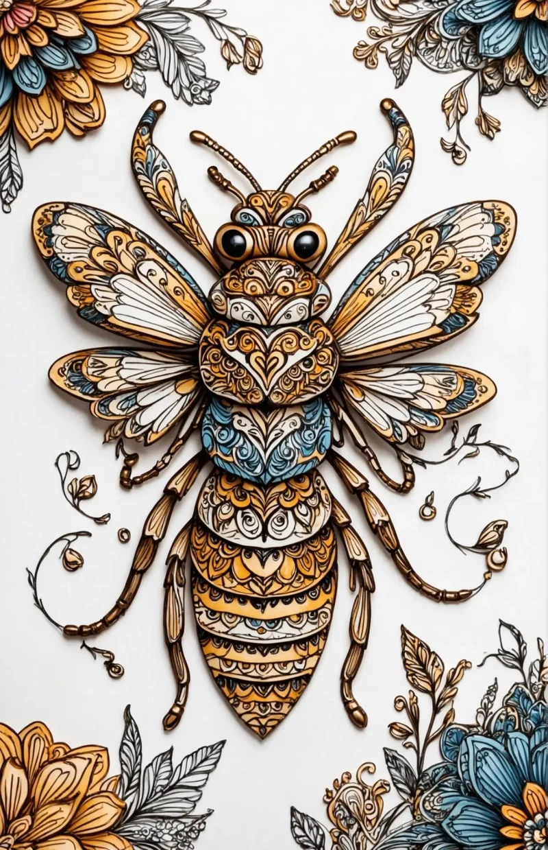 Golden Illustrative Bee Poster – Printed on high quality thick photo paper, 11×17 inches.