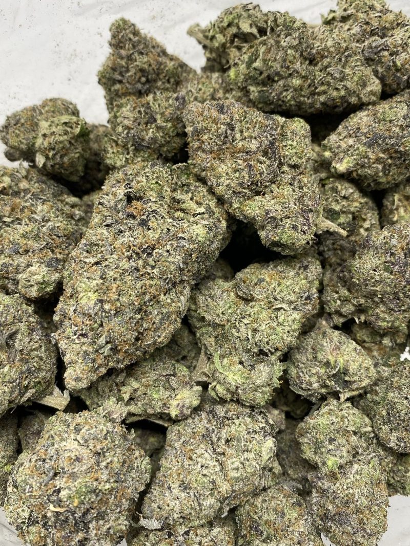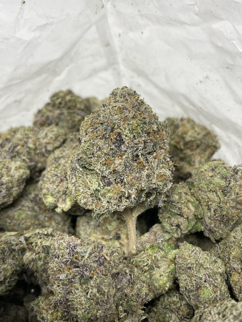 Greasy Death Reaper is a heavily indica-dominant hybrid created through crossing the legendary Greasy Pink with Death Reaper, known for its high gas content and knockout potency. When cracked open, users will be hit with deep gassy aromas laced with earthy funk, diesel fumes, and a slightly sweet backend. The buds are dense, chunky, and absolutely caked in trichomes, with a heavy mix of dark purple, deep green, and a greasy frost sheen that screams potency. Expect heavy sedative effects, couch-lock, and full-body relaxation that make this strain ideal for evening use or deep sleep—definitely not for the faint of heart. An elite 5-star cut, Greasy Death Reaper is a small-batch connoisseur drop that won’t last long.
