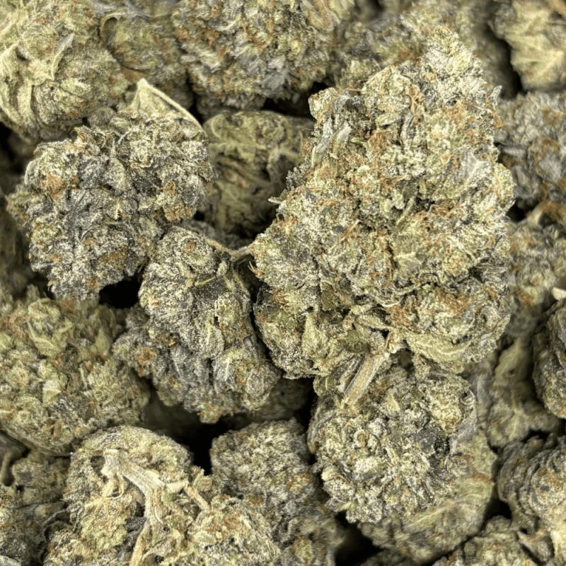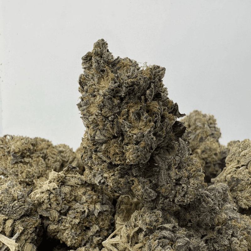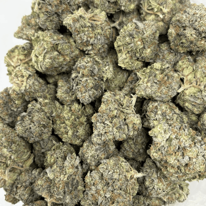 Greasy OG (Bigs) is a potent indica-dominant cross of Gorilla Glue #4 and OG Kush, known for its deep gas profile and sedative strength. When cracked open, users will be hit with pungent diesel, earthy pine, and a thick kushy funk that fills the room. This bigs batch features large, knuckled-up buds that are dense, sticky, and absolutely drenched in trichomes, with dark green and purple hues peeking through. The effects are heavy and long-lasting—expect deep body relaxation, mental fog, and serious couch-lock. Best reserved for nighttime use or seasoned smokers chasing knockout gas.