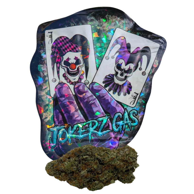 Take a gamble that always pays off with Jokerz Gas, our 14g masterpiece crafted for the connoisseur who demands nothing but the best. Encased in a striking, casino-inspired custom mylar bag—complete with a joker’s hand and playing cards—this exclusive strain exudes luxury and intrigue.