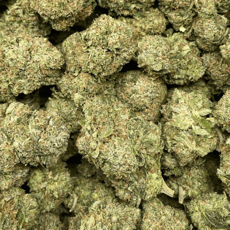 Lindsay OG, also known as “Lindsay Kush” or “Lindsay OG Kush,” is a slightly Indica-dominant hybrid (60% Indica/40% Sativa) created by crossing OG Kush with an unknown hybrid. When cracked open, users will encounter pungent skunky aromas with earthy and herbal undertones, complemented by a subtle sweetness. This batch consists of small, dark green popcorn-shaped nugs adorned with minty leaves, bright orange hairs, and a thick layer of golden amber crystal trichomes. Lindsay OG delivers a balanced high that begins with mental clarity and lifted happiness before transitioning into a deeply relaxing body effect that can lead to couch-lock. With THC levels ranging from 15-23%, this strain is ideal for managing chronic pain, insomnia, stress, muscle spasms, or appetite loss.