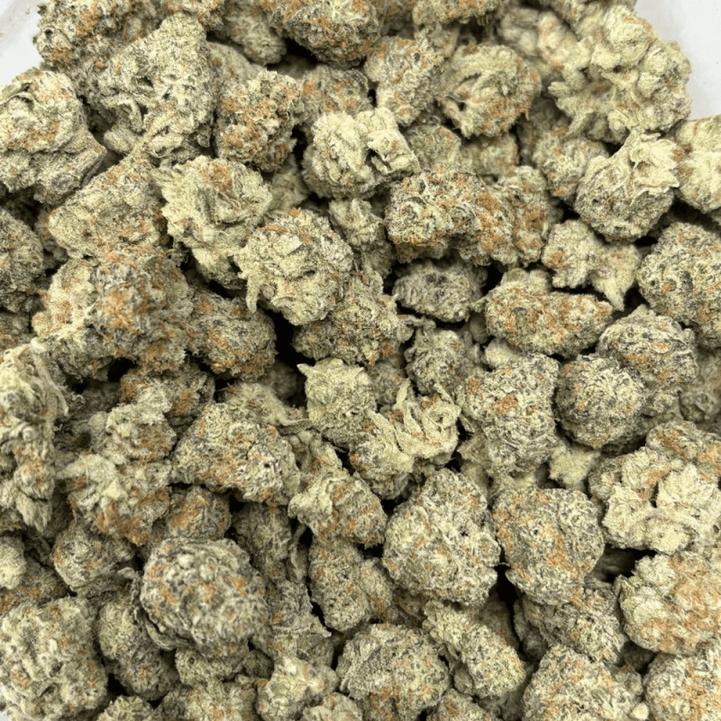 London Pound Cake (Smalls) is an indica-leaning hybrid created by crossing Sunset Sherbert with a heavy-hitting unknown indica, delivering dessert-forward terps with a soothing effect. When cracked open, users will be hit with sweet aromas of berry cake batter, vanilla, and a subtle earthy backend. This smalls batch is packed with dense, frosty popcorn-sized buds that show off light green and purple hues wrapped in fire-orange pistils. The high is smooth and calming, perfect for kicking back without complete sedation—great for evenings or lazy afternoons.