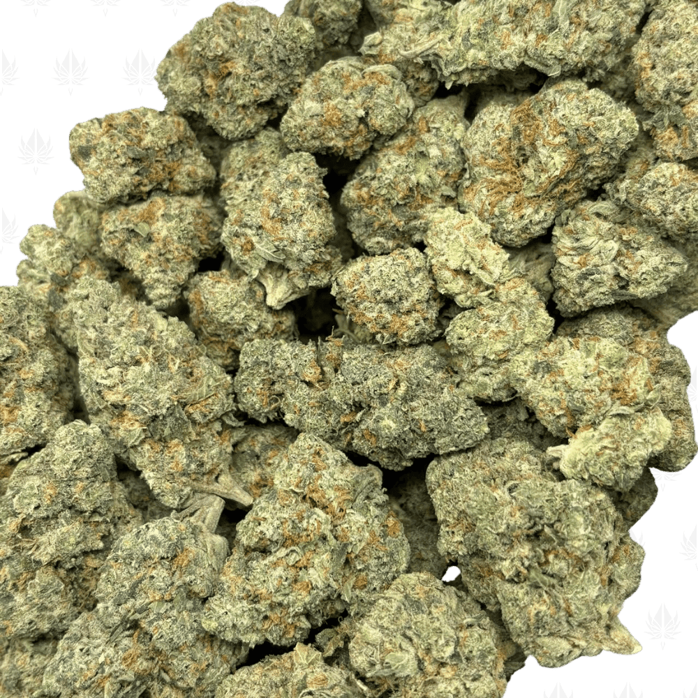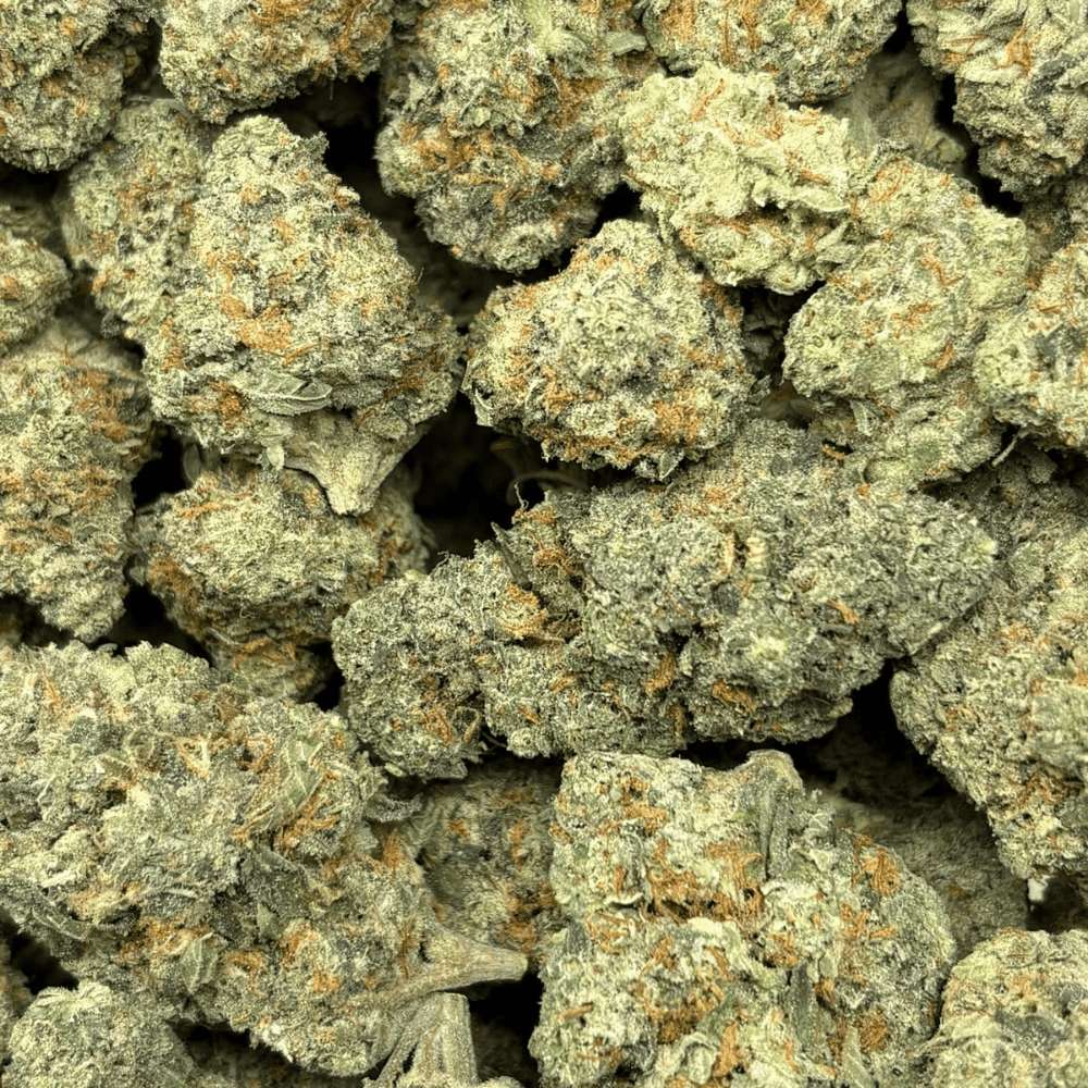 OG KUSH – TRIP GAS is a legendary Indica-dominant hybrid known for its heavy-hitting gas profile, originally bred from Chemdawg, Lemon Thai, and Pakistani Kush. When cracked open, this strain releases an aggressive skunk and diesel aroma layered with earthy pine and a hint of lemon zest. These buds are medium–large in size, dense and chunky with olive green hues, fiery orange hairs, and a thick coat of milky trichomes. OG KUSH delivers a strong, sedative body high with a cerebral buzz—ideal for unwinding at night or zoning out after a long day.