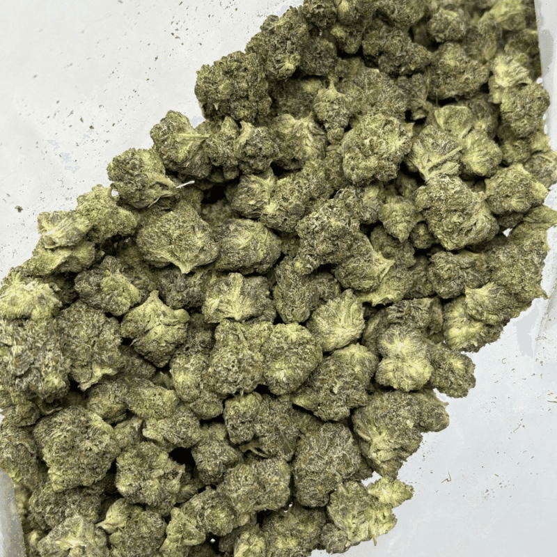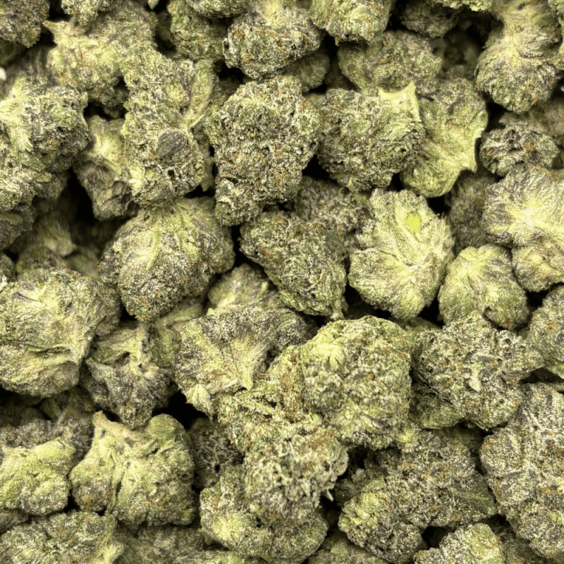 Pink Fugazzi (Smalls) – Quad Gas is a potent indica-dominant Pink Kush cross known for its rich gas-forward terpene profile. When cracked open, users will be hit with intense aromas of sweet fuel, earthy musk, and subtle floral undertones. This batch consists of small, dense nugs that are sticky to the touch and coated in thick trichomes, with hues of deep green and light purple throughout. Despite their size, these buds pack a punch — delivering strong body sedation, relaxing mental effects, and a creeping couch-lock perfect for winding down in the evening.