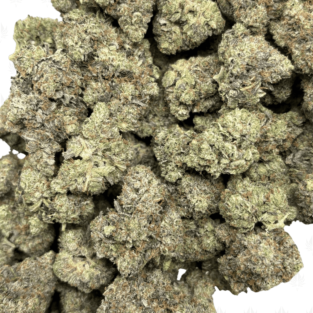 PINK NUKE (BIGS) – QUAD GAS is a heavy Indica strain known for its knockout lineage of Pink Kush crossed with Death Bubba, delivering full-bodied sedation and classic gassy terps. When cracked open, it releases a pungent wave of fuel-soaked earth with hints of skunk and sweet pine. The buds are medium–large in size, dense and tightly packed, showcasing deep olive and forest greens with streaks of purple and bright orange pistils buried under thick layers of frosty trichomes. Pink Nuke hits hard with a fast-acting body melt that’s deeply relaxing, couch-locking, and ideal for winding down into a heavy, pain-free sleep.