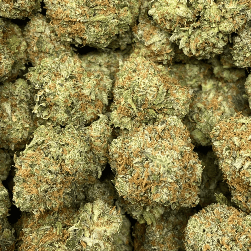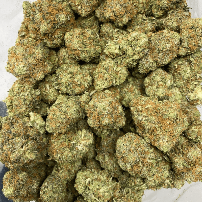 Rockstar North Face is a powerful indica-dominant cross that blends the classic heavy-hitting Rockstar genetics with a Northern-inspired cut, built for serious sedation. When cracked open, users will be met with bold, skunky aromas of earthy kush, pepper, and a light hint of sweet herbal spice. The buds are medium-sized, dense, and absolutely drenched in burnt-orange pistils that contrast against a bright green canvas—this one really pops in the bag. Effects hit fast with a relaxing body buzz and heavy-eyed euphoria, making this a go-to strain for evening use, stress relief, or deep couch sessions.