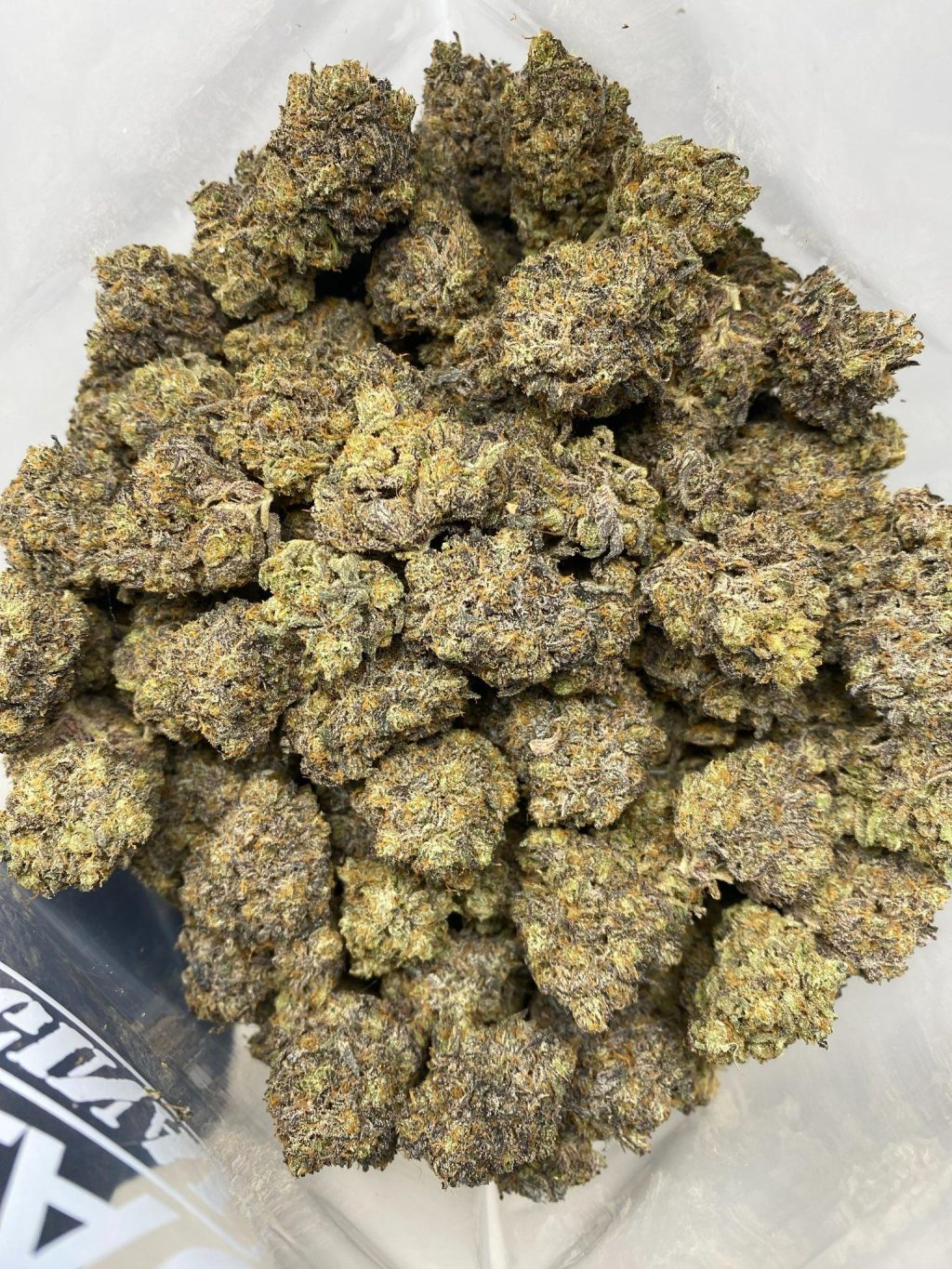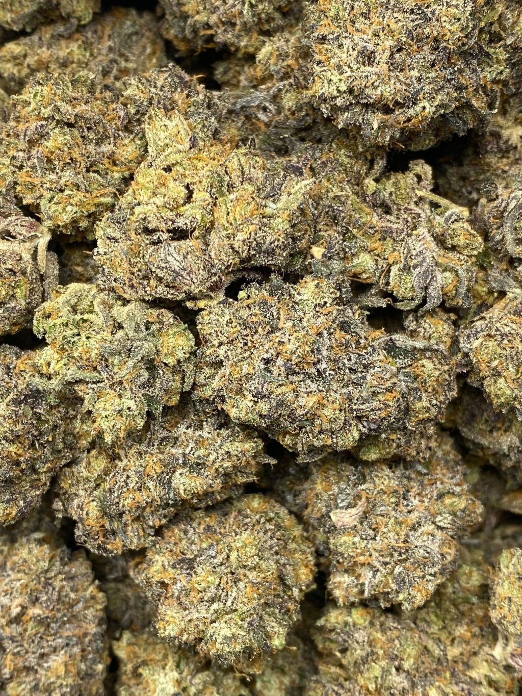 Scrooge #3 is a potent Indica-dominant strain bred by Compound Genetics, crafted from the powerhouse lineage of Jokerz #31 x The Menthol. This strain is a gas lover’s dream, delivering bold flavour and knockout effects. When cracked open, users will be met with pungent aromas of pure gas, creamy sweetness, and subtle Runtz-like candy notes, wrapped in a mentholated fuel kick that lingers in the air. This batch features dense, medium-sized buds, with deep purple and dark green hues, absolutely caked in thick trichomes. The sticky, resinous texture and fiery orange pistils highlight its top-tier quality.