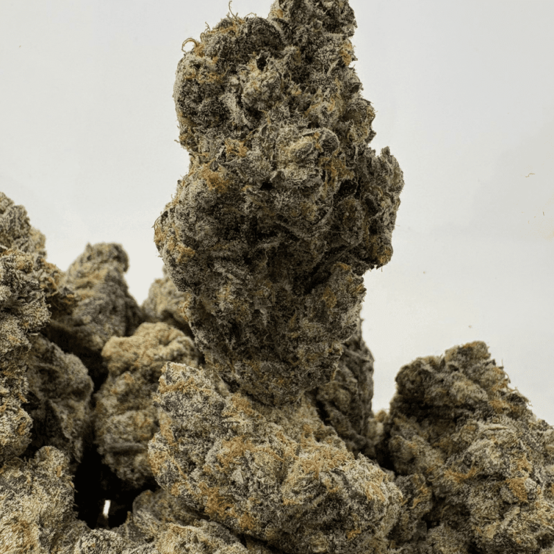 Snowman (Bigs) is a sativa-dominant hybrid from the Girl Scout Cookies lineage, bred for its energetic high and frosty appearance. When cracked open, users will be hit with a wave of creamy gas, nutty vanilla, and earthy cookie funk. This batch showcases chunky, beautifully manicured large buds with a thick coat of shimmering trichomes, light and dark greens intertwined with deep purples, and bright orange pistils throughout. The smoke is smooth and flavourful, delivering a focused, euphoric buzz that lifts your mood and sharpens creativity—ideal for daytime use or social settings.