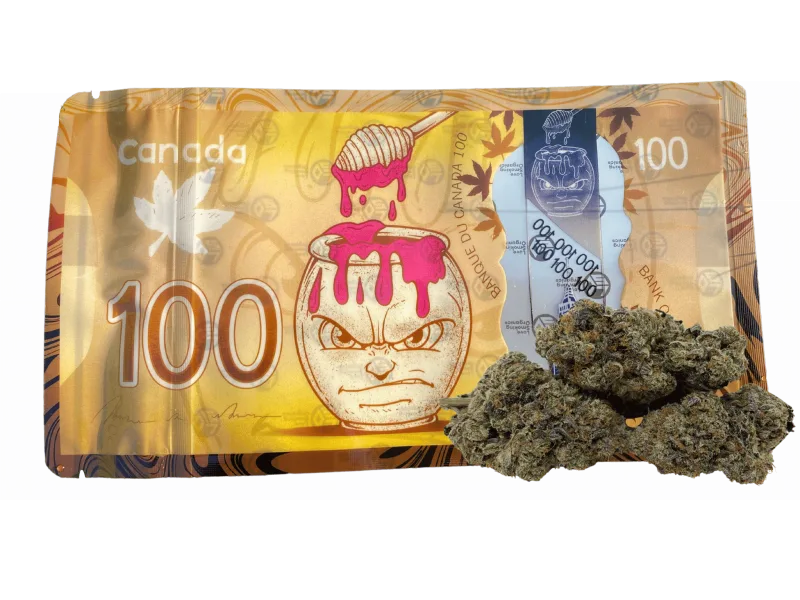 Introducing Sticky Pink LSO, a top-shelf indica strain grown with care by Love Smoking Organics. This strain is all about deep relaxation, offering potent effects that perfectly capture the essence of a high-quality indica. Encased in a one-of-a-kind, custom-shaped mylar bag that mirrors a Canadian $100 bill, this packaging showcases luxury at its finest. A clear window in the design allows you to get a sneak peek of the lush, sticky buds inside, highlighting the quality and attention to detail that sets Sticky Pink LSO apart. Packaged in 7g increments. Get ready to experience exceptional aroma, flavour, and potency, meticulously curated to meet the highest standards.