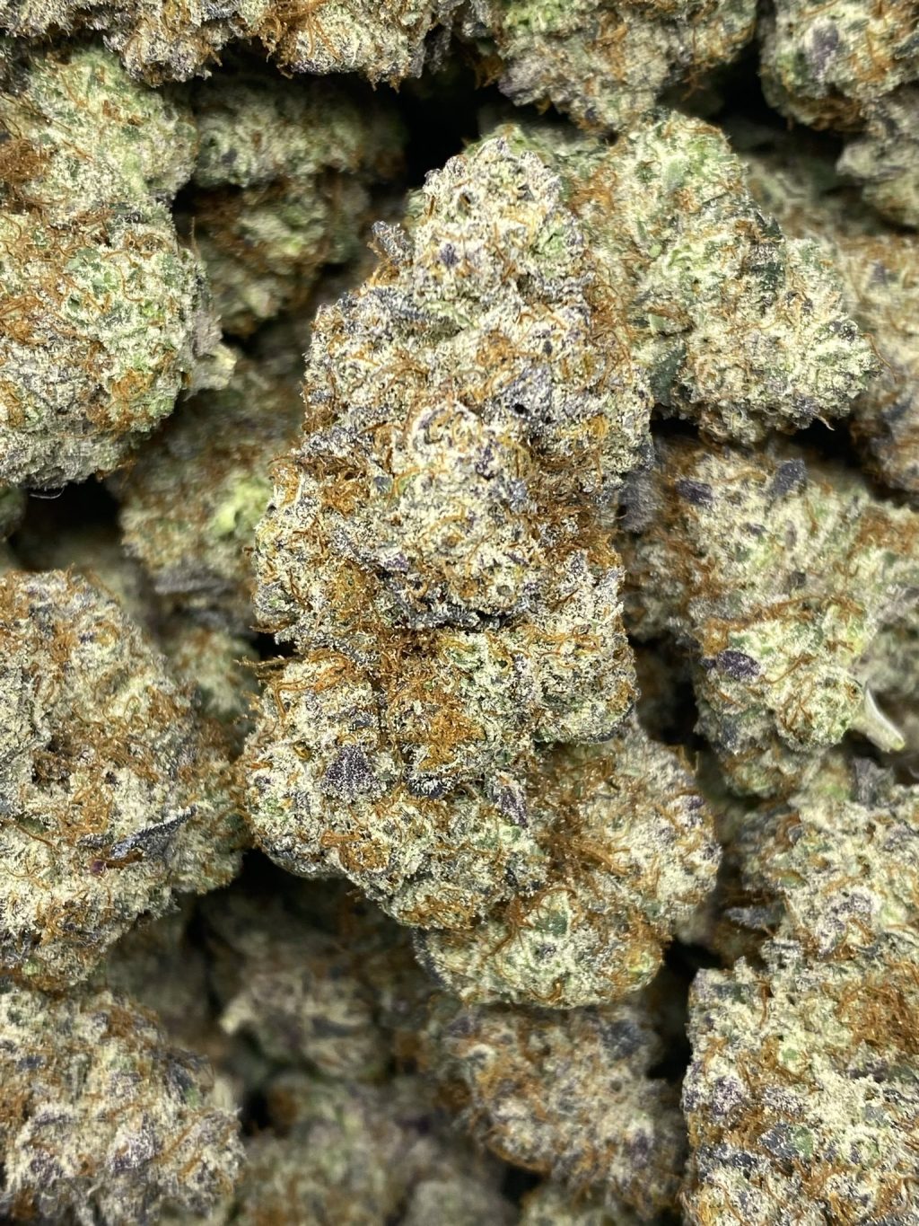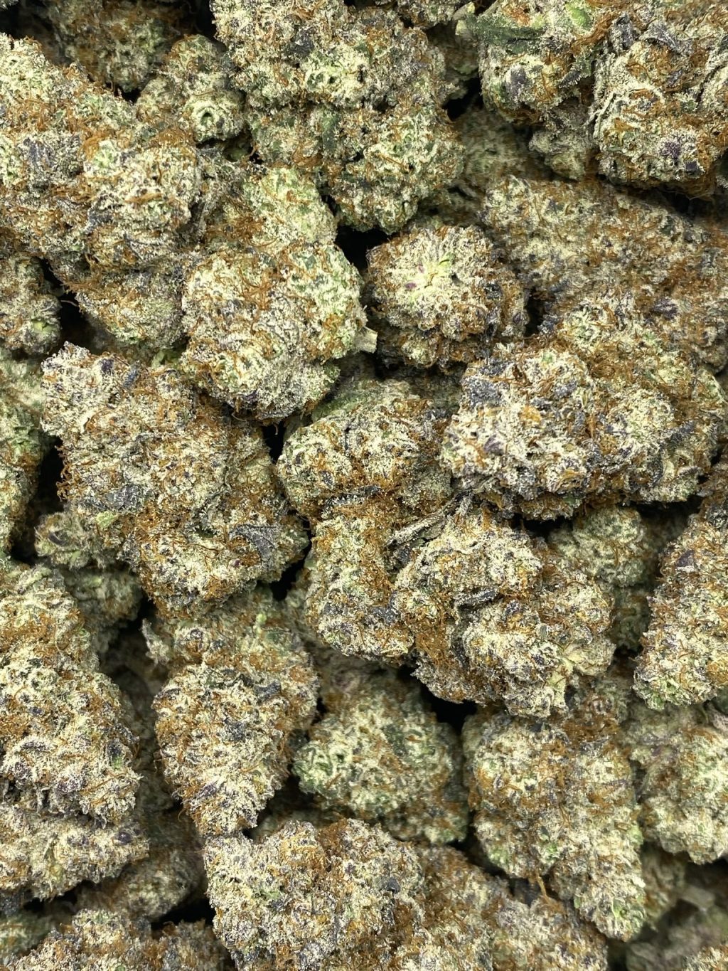 The Original Lemonade is a hybrid strain with a bright citrus lineage, likely leaning toward a Sativa-dominant expression. When cracked open, users will be hit with zesty lemon peel, creamy citrus, and subtle gassy undertones that give this batch a candy-like sharpness. The buds are medium-sized and beautifully structured, with a light green base drenched in crystal frost and vibrant orange pistils—some even showing hints of purple beneath the sugar. This one delivers an uplifting, euphoric head high with a smooth comedown, making it perfect for daytime sessions or a creative energy boost. Refreshing in both flavour and effects.